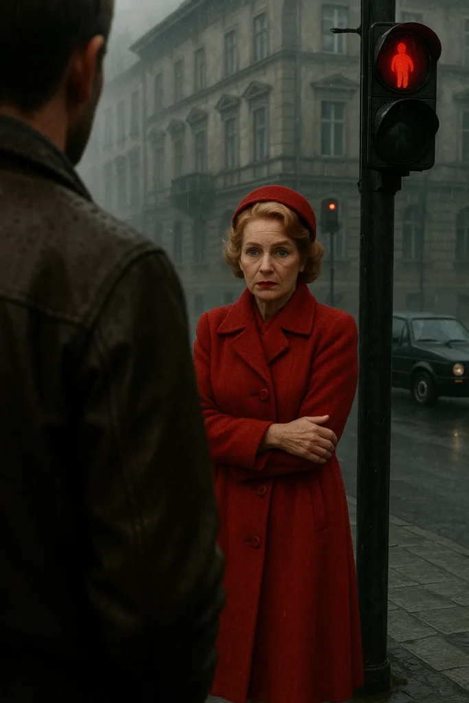 Manchmal, wenn ich mich in einer Fensterscheibe spiegle, glaube ich, sie steht hinter mir. Nicht bedrohlich, eher geduldig. Ihr Mantel leuchtet nicht, er atmet. Ein Rot, das sich an alles heftet, was ich bin. Und in diesem Atem weiß ich: Es gibt kein Danach, kein geheiltes Zurück. Nur dieses Leben mit ihr. Mit dem Wissen, dass ich nie wieder allein sehen werde.